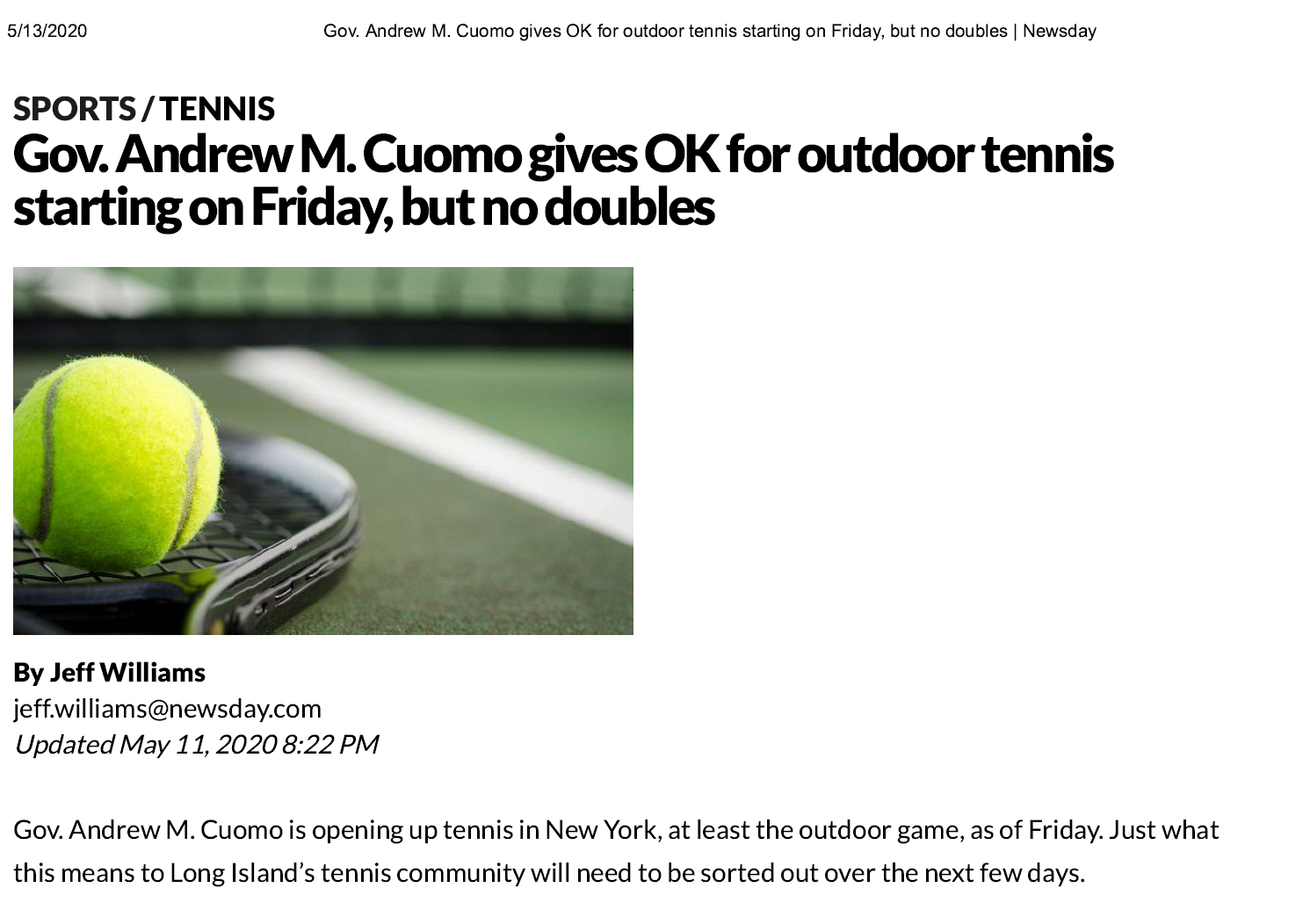Long Island Tennis Community Appeal Opening of Public Tennis Courts.